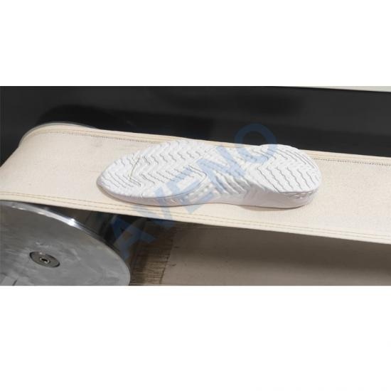 Outsole Belt Flexing Tester is used to determine the flexing resistance of Shoe’s outsole. Paste or sew the sample outsole on canvas belt surface, machine reel drive the belt, simulated people walking with shoes. After flexing a certain number of times, check the damage and fracture degree of the sample.